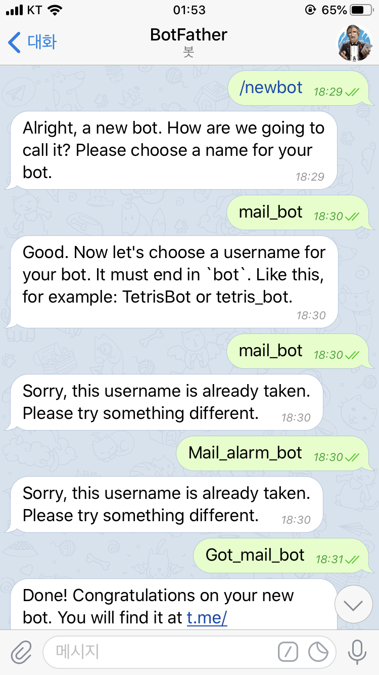 [Python] Telegram 메일 알람 챗봇 만들기 (2) : 텔레그램 챗봇 만들기 본문